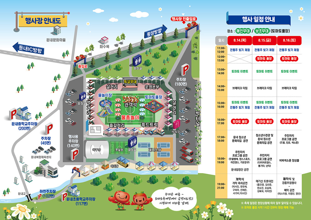 - 주제: 전국 최고 품질의 둔내 고랭지 토마토와 함께하는 여름 축제