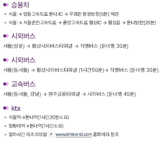 - 자가용, 시외버스, 기차 등 접근성 우수